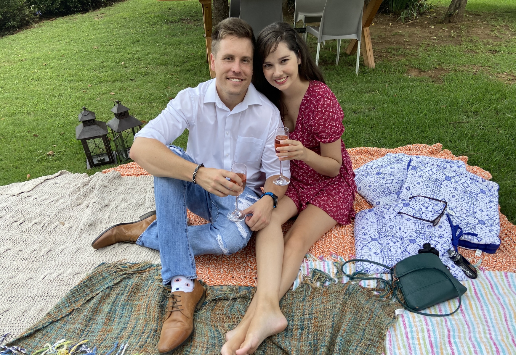 Hierdie liefdesverhaal begin met ‘n Tinder regs-swipe tydens die 2020 lockdown. Die Engelse stadseun was verskriklik verbaas dat die plattelandse meisie so goed in Engels kan chat. Hulle het gou besef dat die verskillende wêrelde nie in hulle pad sal staan nie. Hul liefde vir golden oldies en rock musiek, avonture, om te ontspan en tyd saam te spandeer het gesorg vir ‘n vinnige konneksie.
