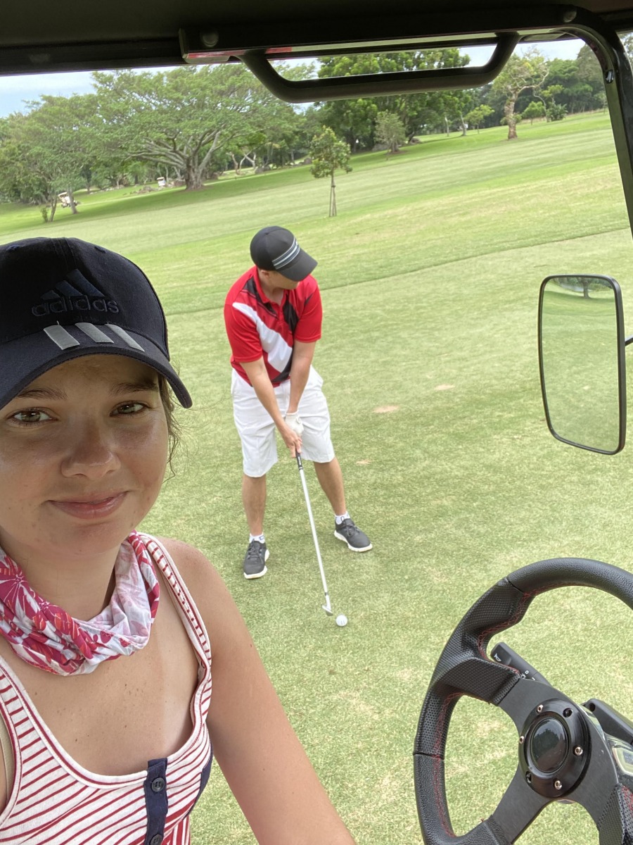 Danksy Janie se werk was sy darem alreeds blootgestel aan die wêreld van Engels. Die verskriklike ‘loud English family’ was nogtans iets om aan gewoond te raak. Gholf en warm Durban weer en seewater was iets nuut vir haar. Haar eerste gholf ‘shot’ was iets waaroor die familie nog steeds praat. Dit was ongelooflik goed, maar ongelukkig net ‘first time luck’. Steeds geniet sy dit om nou saam met die gholfers te kuier en so nou en dan weer haar luck te probeer. Om bier te down en Tequila shots te vat is nog steeds ‘n stryd!
